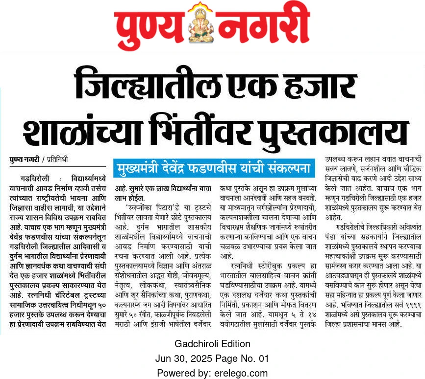 As part of this, inspired by the vision of Chief Minister Devendra Fadnavis, a unique and inspiring initiative is being launched in tribal and remote areas of Gadchiroli district to set up wall libraries in schools.