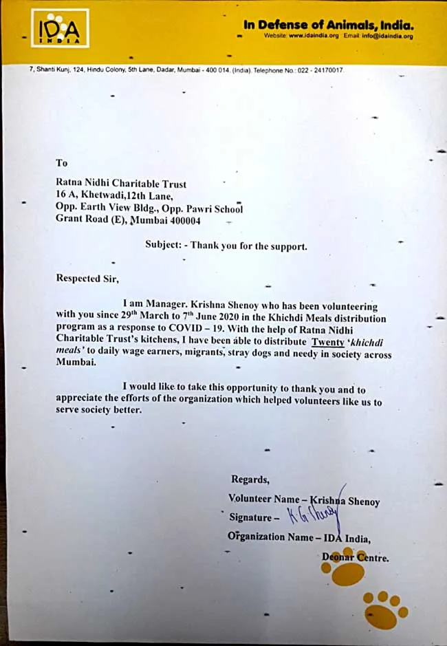 THANK YOU FOR YOUR SUPPORT - MR. KRISHNA SHENOY - IDA FOUNDATION