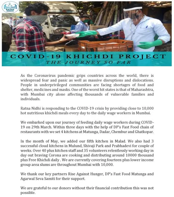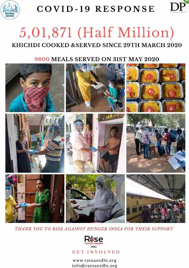 COVID-19: MILESTONE ACHIEVED - 5,01,871 (Half Million) KHICHDI MEALS SERVED & 1,786 DRY RATION KITS DONATED SINCE 29TH MARCH, 2020 - 31ST MAY, 2020