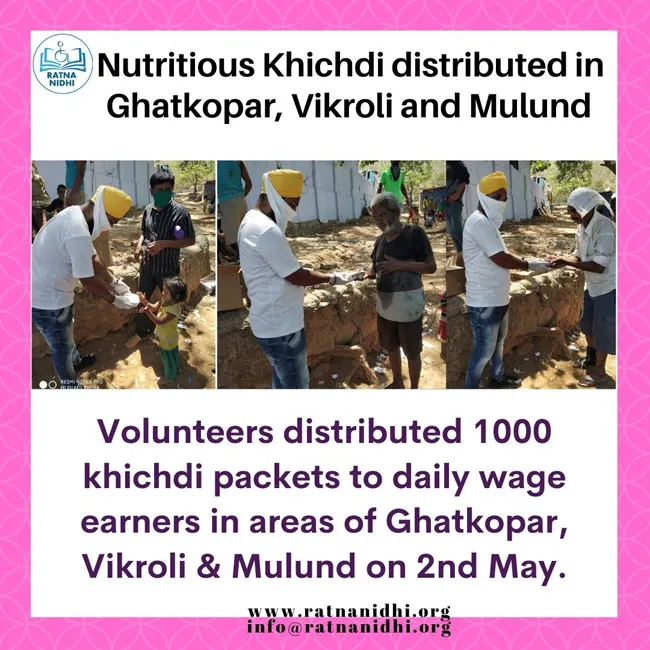 COVID-19: 1000 PACKETS OF NUTRITIOUS KHICHDI DISTRIBUTED TO DAILY WAGE LABORS IN GHATKOPAR & MULUND - 4TH MAY, 2020