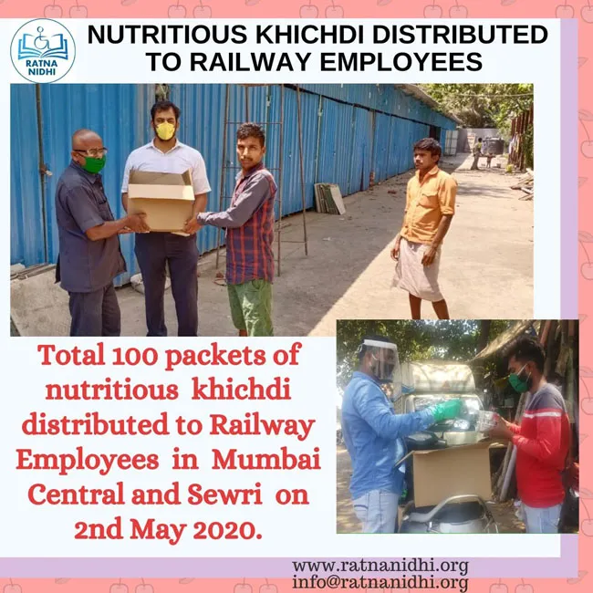COVID-19: 100 NUTRITIOUS KHICHDI DISTRIBUTED TO RAILWAY EMPLOYEES IN MUMBAI CENTRAL & SEWRI - 2ND MAY, 2020