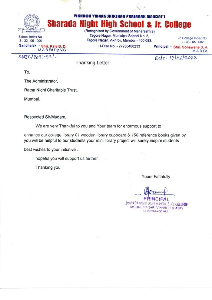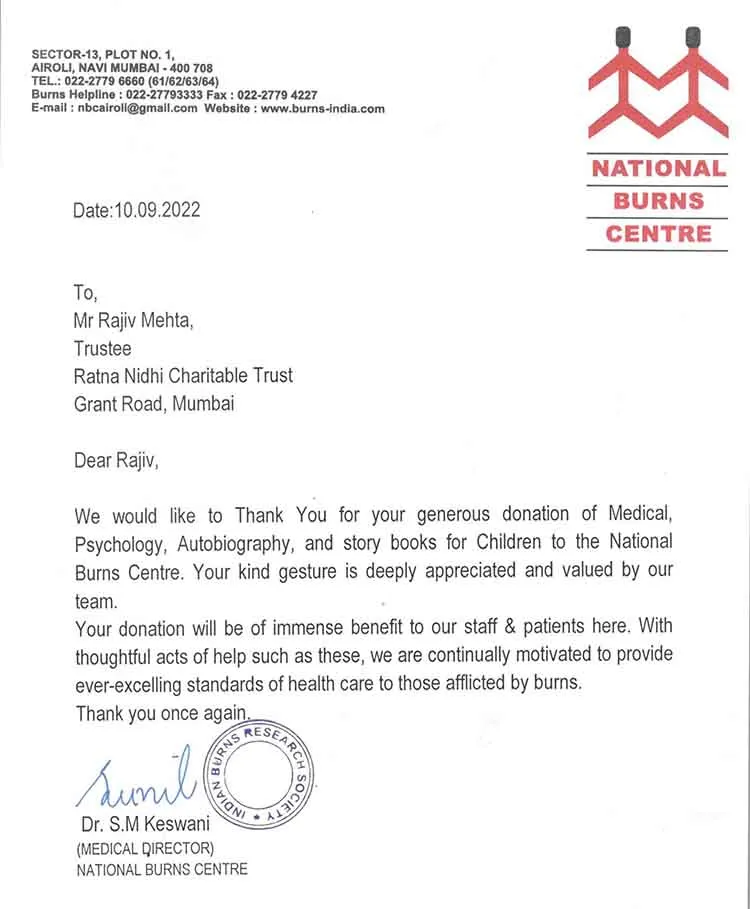 We gratefully acknowledge the receipt of about 150 books for the library of Inlaks Hospital Located at Chembur Colony, Indira Nagar, Chembur, Mumbai 400074. It is indeed a valuable source of knowledge. These books are already in circulation for our staff and relatives of patients. Your consideration, love and affection towards Inlaks Hospital is really appreciable. We assure you to make optimum use of this rich addition of books in the library. Thanks a lot from all trustees, Medical Directors & Staff of Inlaks Hospital for most valuable support and donation from you and your trust.